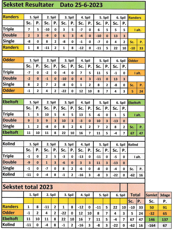 Så til stævnet i Odder 25.6. hvor vi fik 24 point hvilket var godt kommet igen, da vi kun havde 4 point efter de første 3 kampe om formiddagen. Vi kom stærkt igen om eftermiddagen med 20 point.